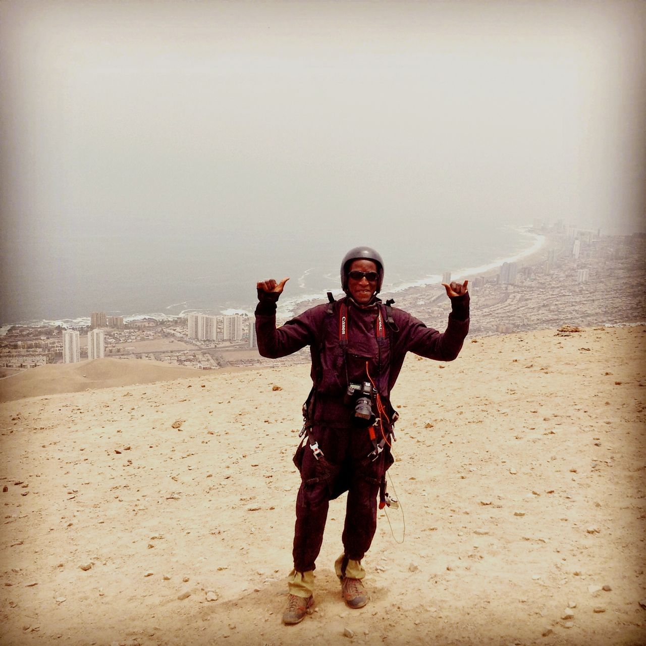 Iquique , étrange cité mix de modernité et d’ancien haut lieu du surf et du parapente idéale pour decompresser et récupérer des nombreux efforts consentis au cours des nombreux trek dans les montagnes péruviennes . Joyeux moments à l’hotel avec une bande de parapentiste argentins de Cordoba òu je suis d’ores et déjà cordialement invité pour un asado et qui m’ont fait découvrir une de leur spécialité le fernet coca , si si c’est bien le fernet branca cet insipide breuvage médicinal que personne ne consomme en France excepté les très anciens au fond de nos campagnes , hé bien Cordoba est la ville au monde avec le taux de vente le plus élevé , étrange (c’est degeulasse ) .